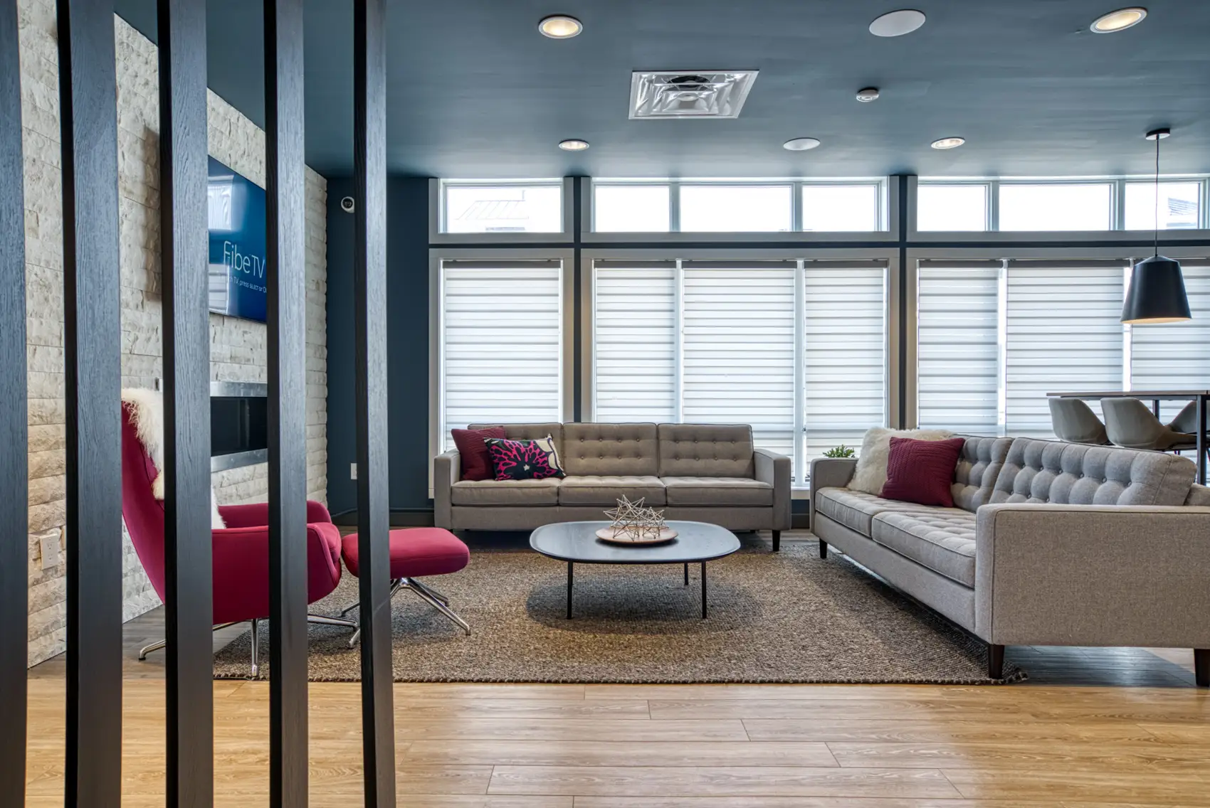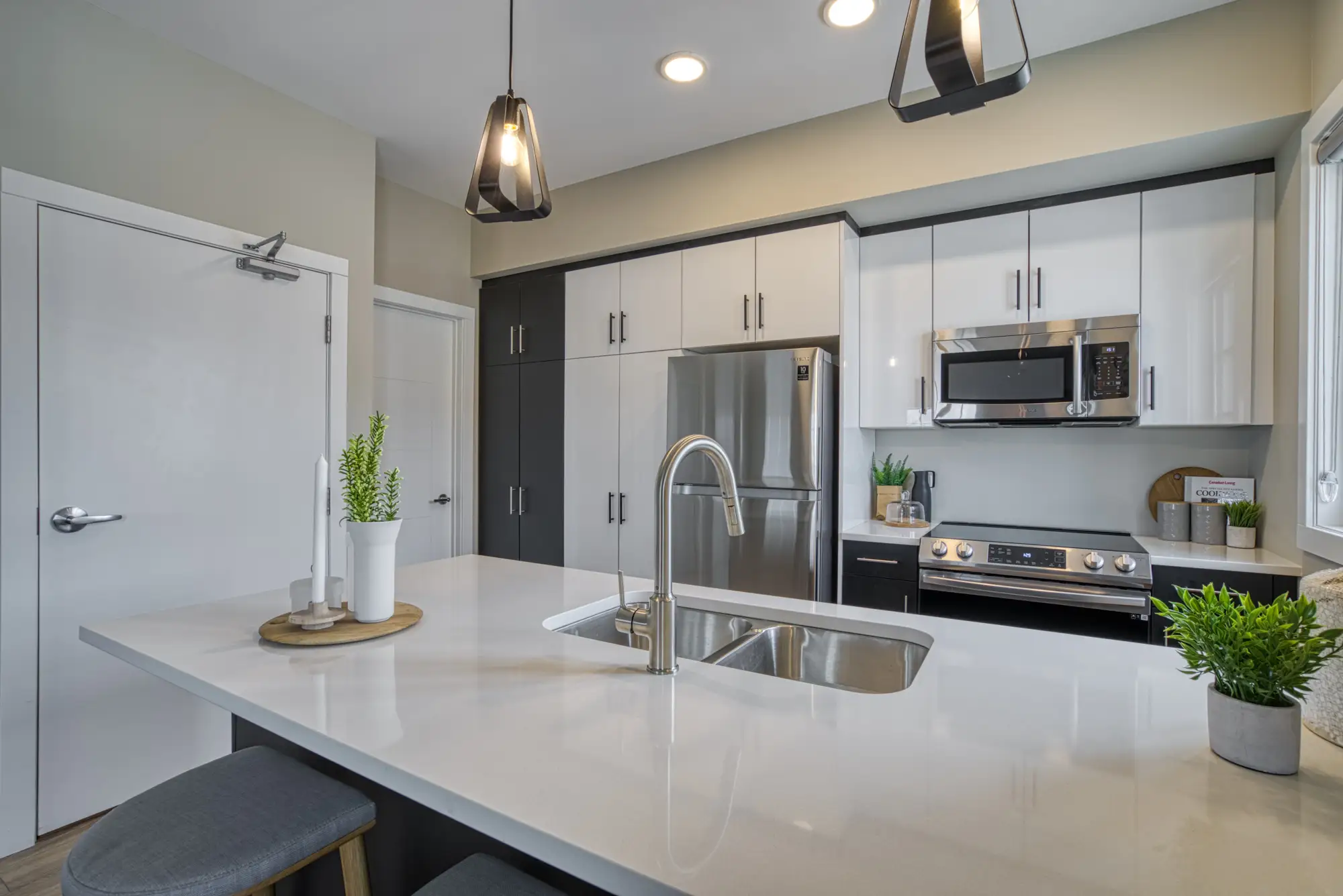The central resident clubhouse features an on-site administration office, as well as a commercial-grade fitness centre, tenant lounge, outdoor pool, community barbecue and fire pit area.