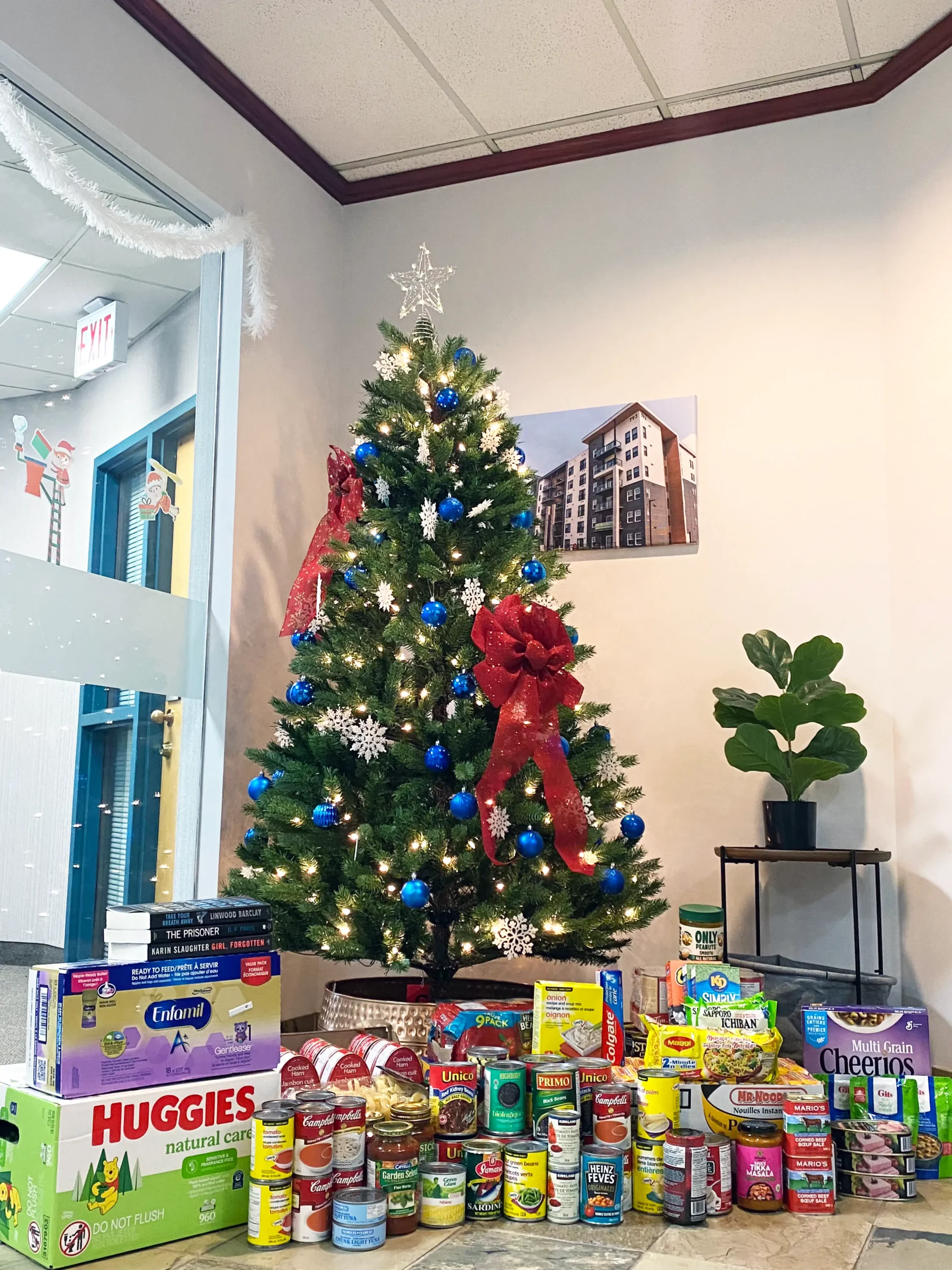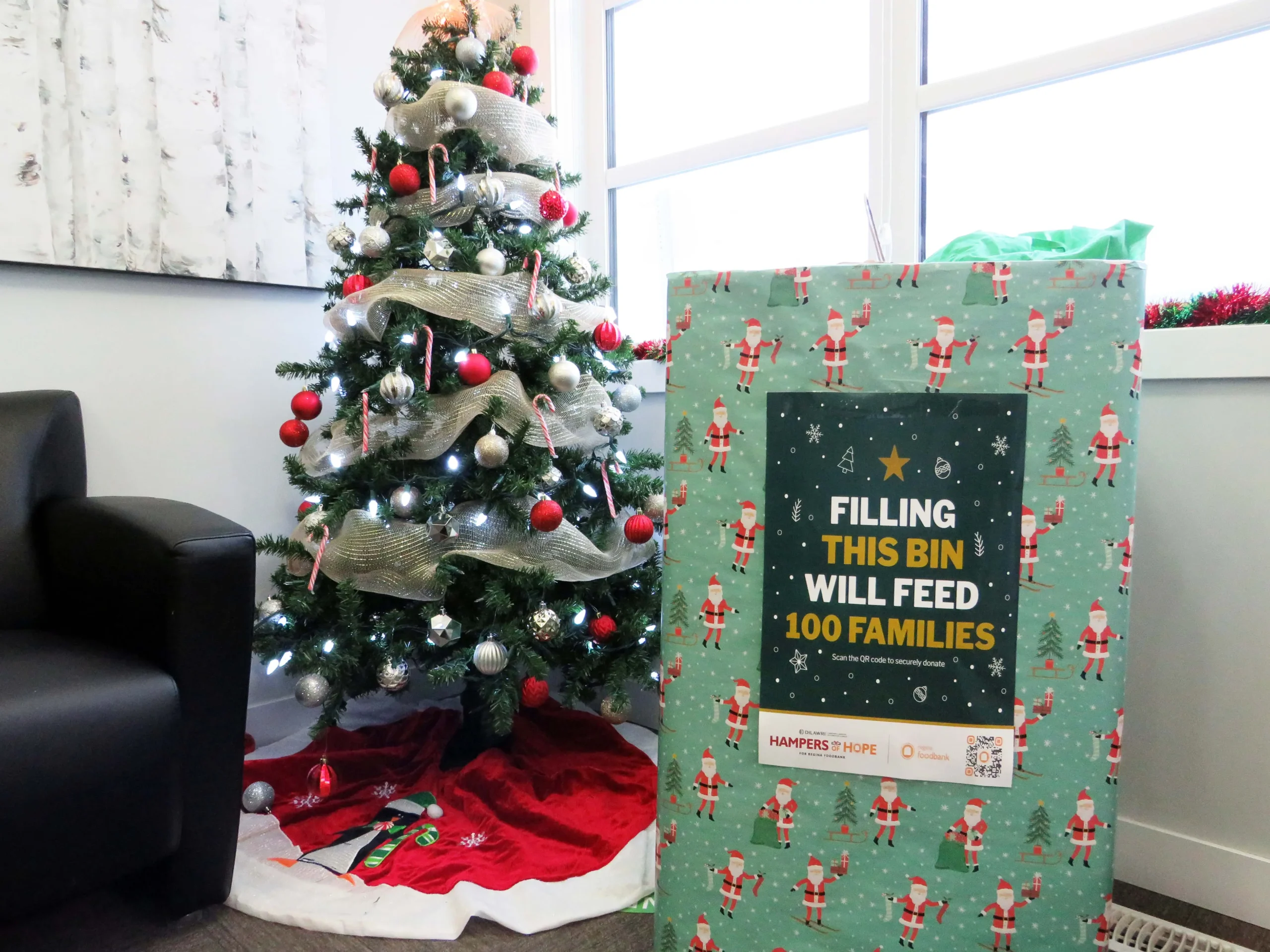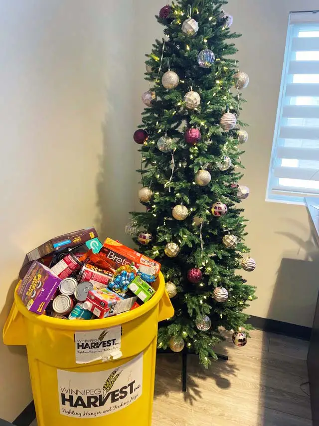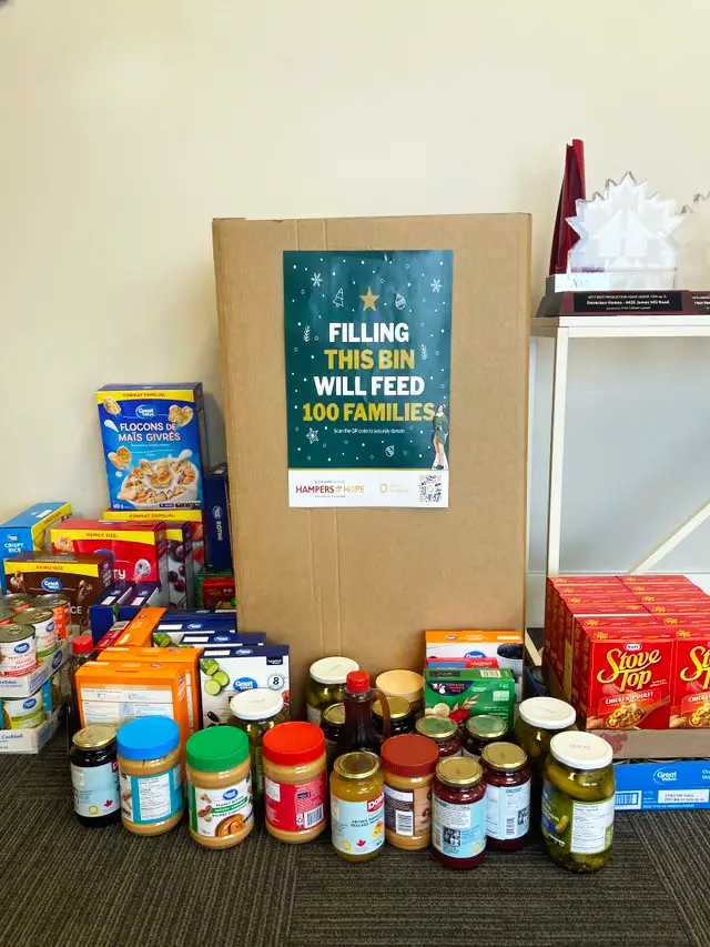 From December 1-24, 2022, donation bins from the Regina Food Bank, Harvest Manitoba, Edmonton’s Food Bank and the Calgary Food Bank were placed in Deveraux leasing and administrative offices, along with posters with QR codes encouraging residents and team members to donate food or funds to the cause.